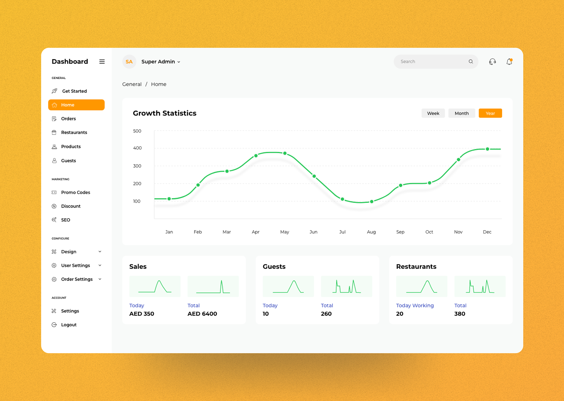 This project is a glimpse into my concept design of an online food delivery app super admin dashboard. Feel free to give feedback/suggestions and appreciation.